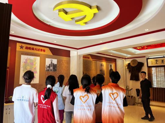 在苍劲挺拔的红军树下,普基镇红军树村党委书记袁杰声情并茂地讲述红军树的由来。当年红军在此集结休整,与群众深入交谈,这棵树也成为那段峥嵘岁月的不朽见证。随后,实践团成员走进红色展厅,在展板与史料前整齐伫立,聆听讲解。中国工农红军第一方面军第九军团的行军路线图、历史照片,无不诉说着先辈长征路的艰辛,让实践团全员深刻感受到革命先辈的奋斗历程,坚定了传承红色基因、砥砺前行的信念。