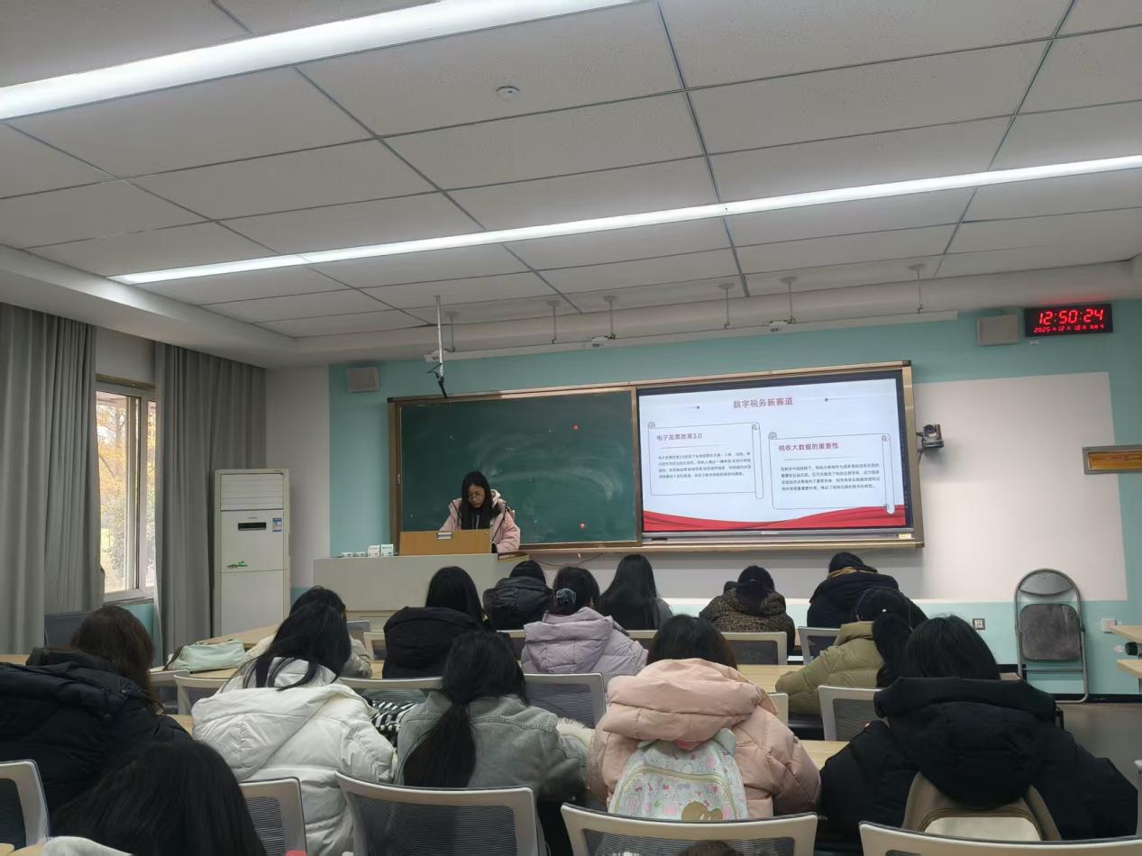 2025年12月18日,财税学院青年学习班在C108教室举办“税承星火,光启新章”主题学习交流活动,活动以数字税收理论学习、行业榜样引领、实践行动倡议为核心,紧扣“新时代青年在数字税收建设中的担当”主线,旨在为青年学子筑牢信仰根基、明晰在数字税收领域的使命方向。