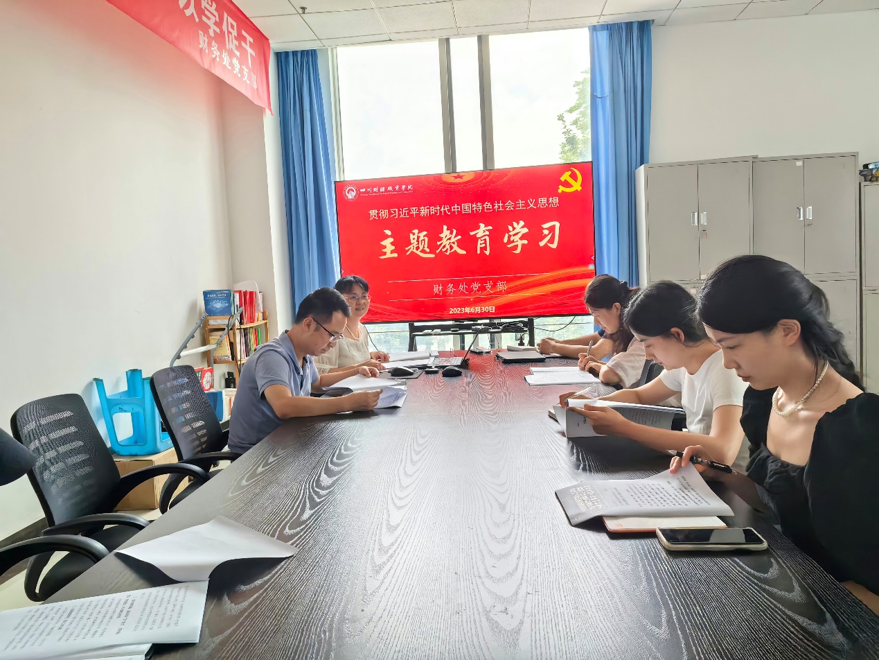 财务处持续深入开展学习贯彻习近平新时代中国特色社会主义思想主题教育,增强党员思想素质和理论知识。2023年6月30日下午,财务处党支部开展集中学习研讨活动。