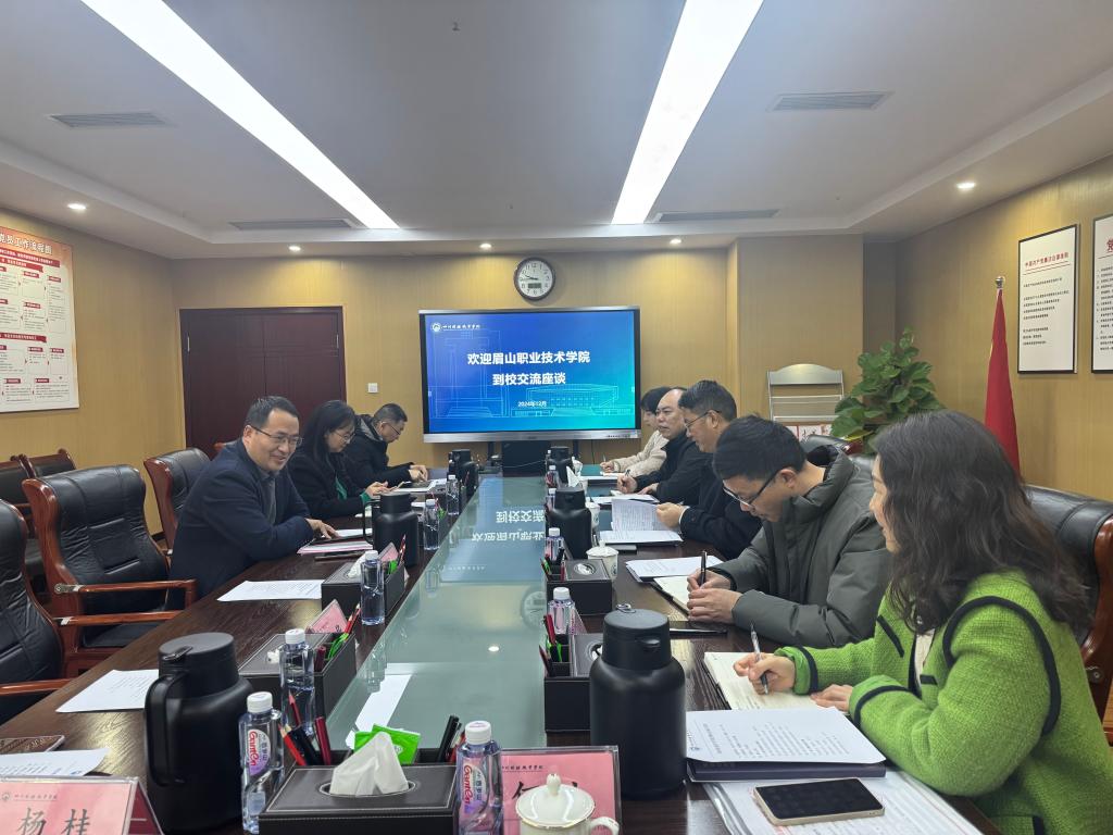 12月5日,眉山职业技术学院党委常委、副院长陈光辉一行7人到我校学习调研,学校党委委员、副院长肖兆飞、财务处处长邱永芳、教务处处长李建军、科研与发展规划处副处长刘华及相关人员参加。