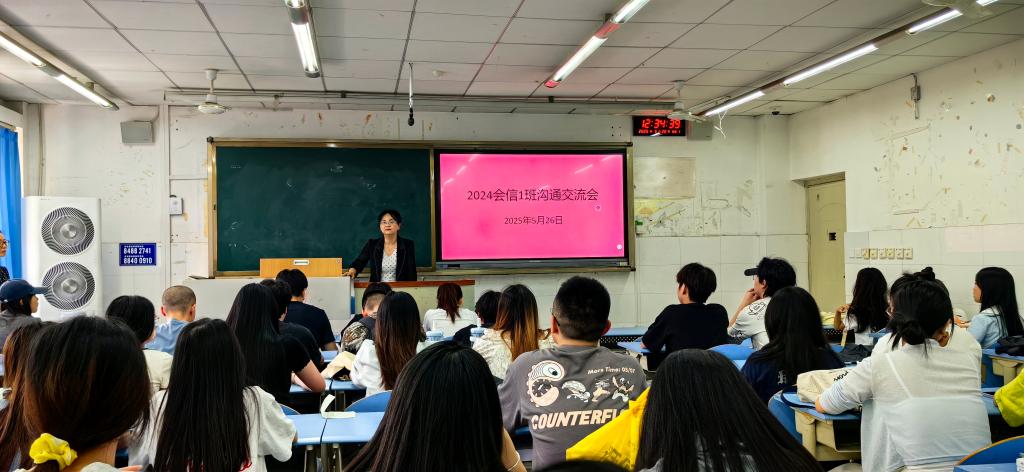 为贯彻落实中央八项规定精神,切实解决与群众沟通不足的问题,5月26日,财务处党支部书记、处长邱永芳带领支部党员携手学工部奖助贷办公室有关同志对接2024级会计信息一班,以学生关心问题为导向,与同学们交流座谈,以实际行动践行服务宗旨。2024级会计信息一班辅导员陈瑶老师主持交流活动。