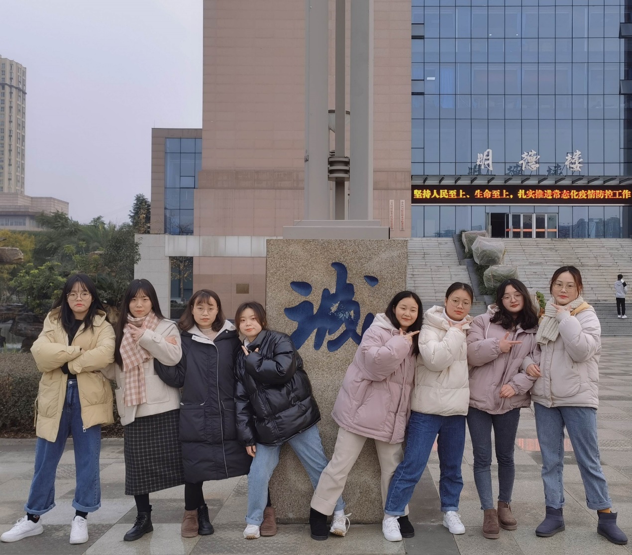 2020年12月23日,全寝室在图书馆旁的草坪拍摄有关诚信的照片。时间飞逝,仿佛昨天还是2020年的那个冬天,眨眼间就是2021年。希望我们在大学这三年都和睦相处、越变越优秀。
