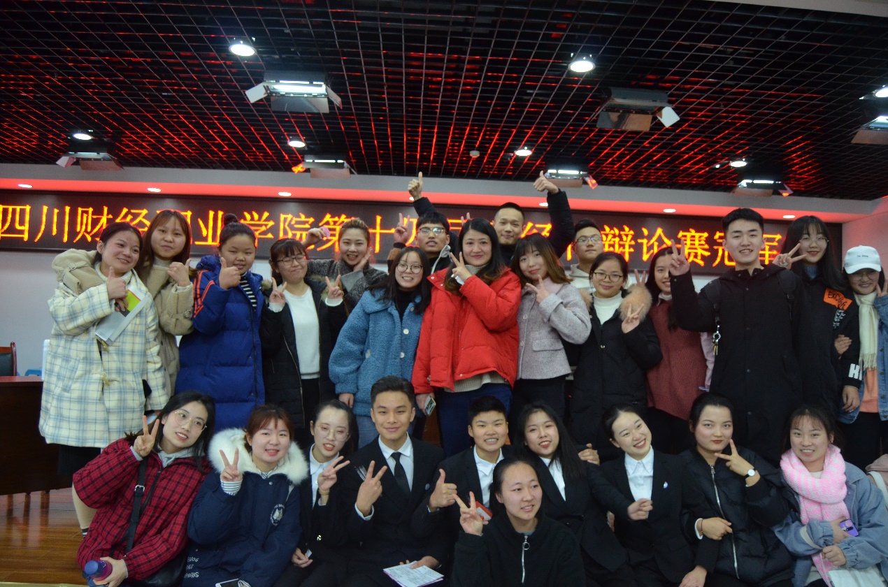 2019年12月19日,学院举行第十四届财经杯辩论赛冠军赛。财税金融系辩论队(财税金融系团总支书记李虹老师、专职辅导员徐言老师等、16级学姐王雅婕、17级学姐姚婉婷、18级欧阳俊棋、朱秋虹、龙丽君、吴逸君、钟蒋伟、朱凌寒、陈虹霖、田钰薇、19级陈思婉、倪一冰、肖坤蓉、杨番、文绪坤、孙俊吉、陈宇松、刘浩、毛艳芳、李菲等)在明德楼308留影。在大一系赛时,打辩论是一种体验;系赛结束后,我有幸的加入了系辩论队,和辩论队的同好讨论、争辩,被选中作为院赛上场的辩手,此时,打辩论是一种历练;分院后,在大二打院赛时,打辩论对于我来说并不是像初生牛犊时一味地去争输赢,而是一种探索,去探索每一个辩题的意义;现在,又一个夏季,上一届的辩论队成员劳燕分飞,各奔前程,5月末2018级答辩与学长学姐再见面时,辩论已经成为了一种怀念。周玄毅曾说“一群人在一起,极其认真地,在高度对抗性的环境里,做一件并无功利,同时又极其考验智商情商价值观以及人品的事情,是最能让人交上真朋友的。认真想一想,除了大学里的辩论队,几乎没有哪个地方同时具备这几个条件。”。今年的财经杯取消了,曾经每一个辩论队的深夜、深夜写稿的辛苦、和队友在一起的安定、曾经所收获的无力感、或输掉比赛的委屈、难过都不曾再有了。辩论对于大二的我来说,暂时的画上了一个句号,这是我在大学时期用最诚挚的真心去对待的一件事情,所幸,它亦以真心回报了我。这是财税金融系辩论队所有成员以及老师共同努力的成果。辩字双辛,绝不是轻松的事情,再回想起19年12月的寒风,我想那依然是热血的,值得我们所有人去纪念永存的一段时光。