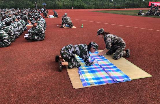 2020年9月15日,在操场举行军训叠被子比赛。军训是对我们身体的考验,也是对我们意志的一种磨练,更让我们明白了什么才是团结的力量。此次叠被子比赛,两位同学互相帮助,你一铺、我一叠、递过去递过来,一个豆腐块就这样出来了,这就是团结。