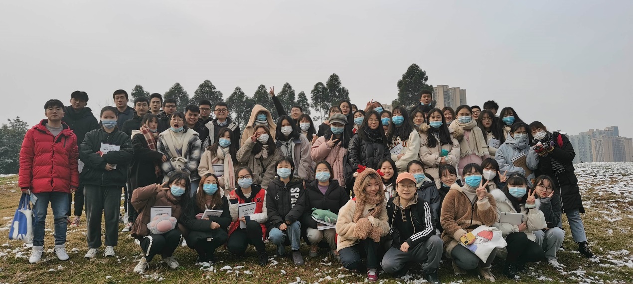 2021年1月8日,前一天晚上迎来了财院这个冬天的第一场雪,也是时隔很多年以来成都这边下的一次大雪,对于我们南方的人来说这样的大雪是真的少见,而且周围的草地都堆起了白茫茫的雪花,所以大家都额外的高兴和兴奋,大家纷纷堆起了雪人、打雪仗,虽然很冷,但是大家都乐在其中,热情已经将手心的冰冷的雪花给加热了,完全感受不到雪冰冷的温度。第二天,作为班长我也主动邀请了班上的同学来进行了合照,以纪念这次与财院以及财院的同学共度的雪夜,希望能以此来纪念我们的这次美好的时光!