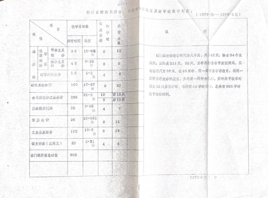 四川省财政局财会训练班课程设置及教学进程计划表(1979·元一1979·8底)