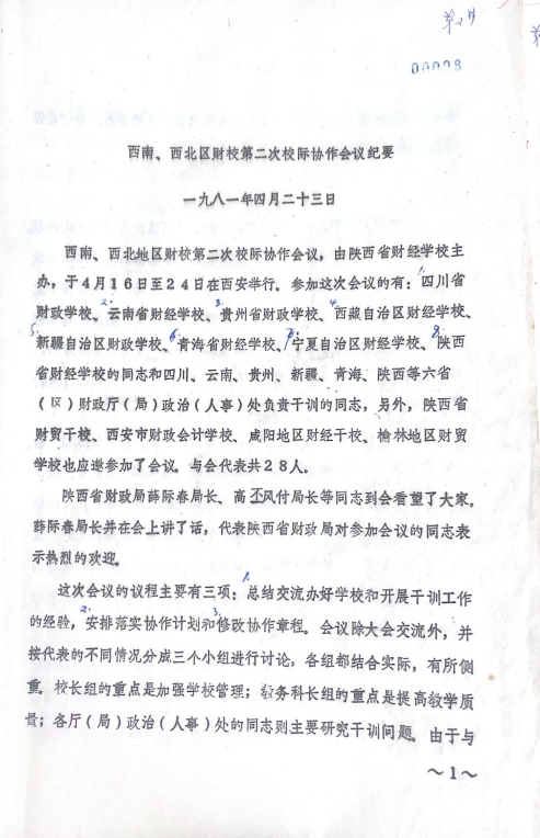 1981年4月16日,在西安召开的西南西北地区财政(经)学校笫二次校际协作会议,我校被推选为下一届校际协作会议主办学校和执行组长。