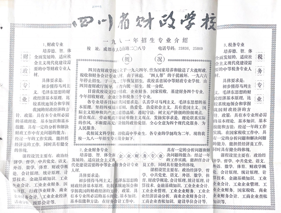 四川省财政学校一九八一年招生专业介绍