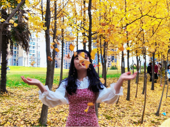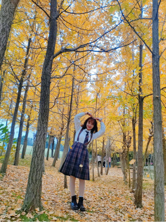 2021年11月23日,我在教学楼旁银杏树林打卡拍照。财院的银杏树林真的算财院的网红地点了,尤其到了深秋,银杏叶都变黄了,那场面更加壮观好看,于是我也去拍照打卡了,留下属于财院的秋天。