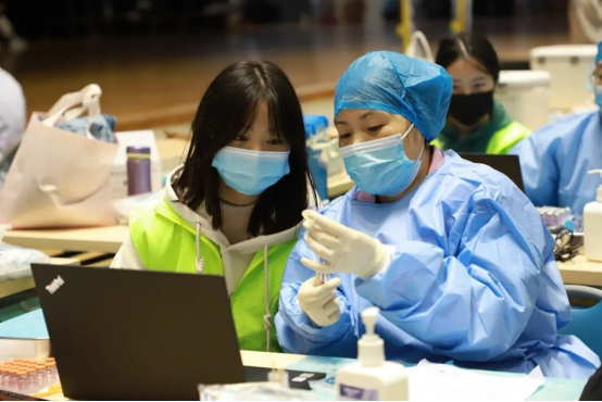2022年3月29日,志愿者们协助进行核酸检测。在疫情来势汹汹的时候,我们上下一心,众志成城,抗击疫情从来都不是“白衣天使”们的事情,更不是单独医生的责任,而是需要我们携手共克时艰,做志愿者让我感到幸福又充实,相信疫情远离的胜利一定会绽放在财院的每一存土地上!