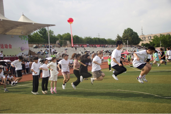 2022年5月11日,运动会。我和同学们在操场上参加跳大绳集体比赛,虽然没有获得好名次,但很开心,感到很不容易。