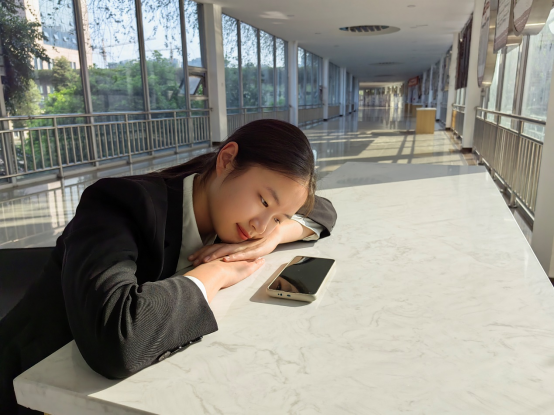 2022年4月10日,在结束了一天职业形体与礼仪的视频拍摄后,和朋友来到了致能楼二楼的长廊里,趁着阳光正好,为我拍摄了这张照片。因为上这门课,我第一次穿上了高跟鞋,和老师学习职场里的礼仪,虽然拍了一天的视频很累,但是看到最后的视频成果时,还是会感到开心和满足。学习礼仪也能让我们更好地尊重他人。