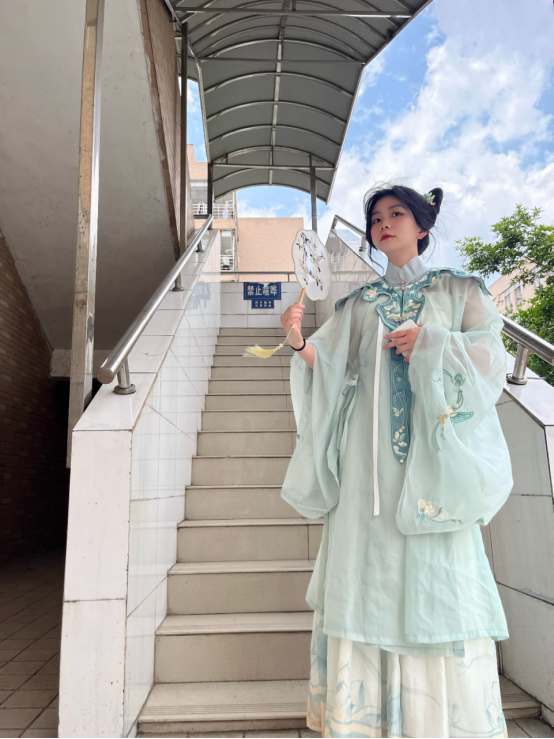 2021年10月19日,在阳光明媚的下午,拍一张美美的汉服照,汉服是传统服饰,也是个人的爱好,有一张自己在学校的汉服照片感到开心^_^