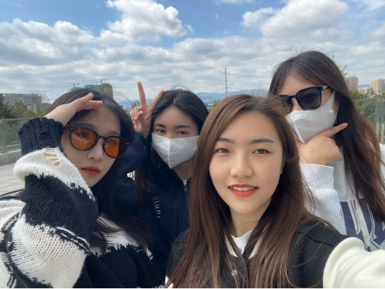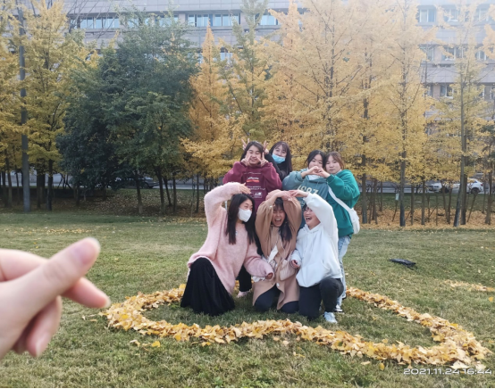 2021年11月24日,因为小组作业而拍的照片但是这一次照片是我们寝室的第一张合照,我觉得费用有意义,那时候枫叶是黄的看起来非常的好看,而且能看的出来大家都非常开心。