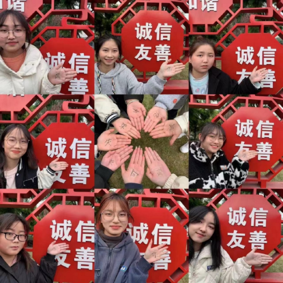 2021年11月12日,在上完诚信教育的课之后,老师要求我们在校园里拍摄三张有关诚信的照片,并记录有关诚信的小故事,于是我们便来到了学校的一块草坪上拍照打卡,这也是我们寝室的第一次集体合照,在完成作业的同时也增加了寝室的友谊。