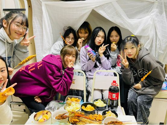 2021年11月6日,寝室第一次聚餐。初到大学的我们因为缘分相识,三个不同班级,七个不同家乡的对方,感谢相遇。这样美好的缘分是大学给我的第一份礼物,我们第一次的聚餐虽然在寝室中,但依然温馨,也希望各位都能有朋友常伴,开心快乐。