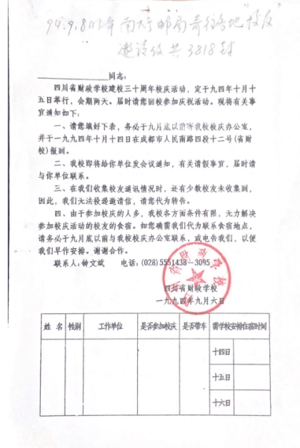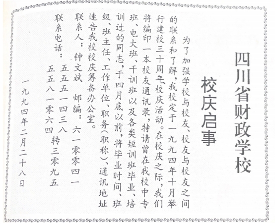 四川省财政学校校庆启事