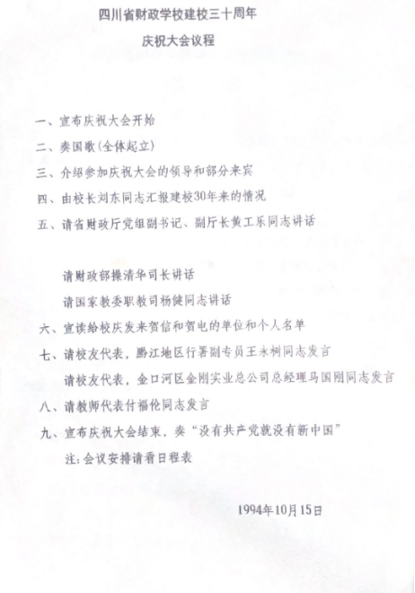 四川省财政学校建校三十周年庆祝大会议程