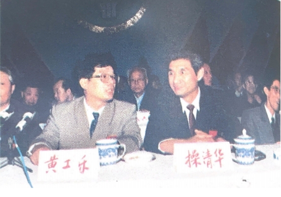 省财政厅副厅长黄工乐(左)、财政部原教育司司长操清华(右)在主题台上