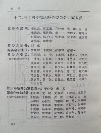三十周年校庆筹备委员会组成人员