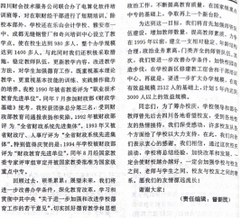 在省财政厅的直接领导下,在社会各界的关心支持下,四川省财政学校经过三十年艰苦卓绝的努力奋斗,从一所默默无名的中专学校,到1993年5月获得省政府批准的“省部级重点中专”这一殊荣,这是对我校三十年来办学成绩的肯定,是财校几代人不懈努力的结晶,它标志着我校办学水平又上一个新台阶,在我校历史上具有特殊的意义。为了总结建校三十年的办学经验,密切职业教育和社会实践的关系,加强校友之间的联系,促进教育教学的改革和发展,学校经过两年多的艰辛筹备,于1994年10月15日在学校综合楼举办了建校三十周年庆祝活动。