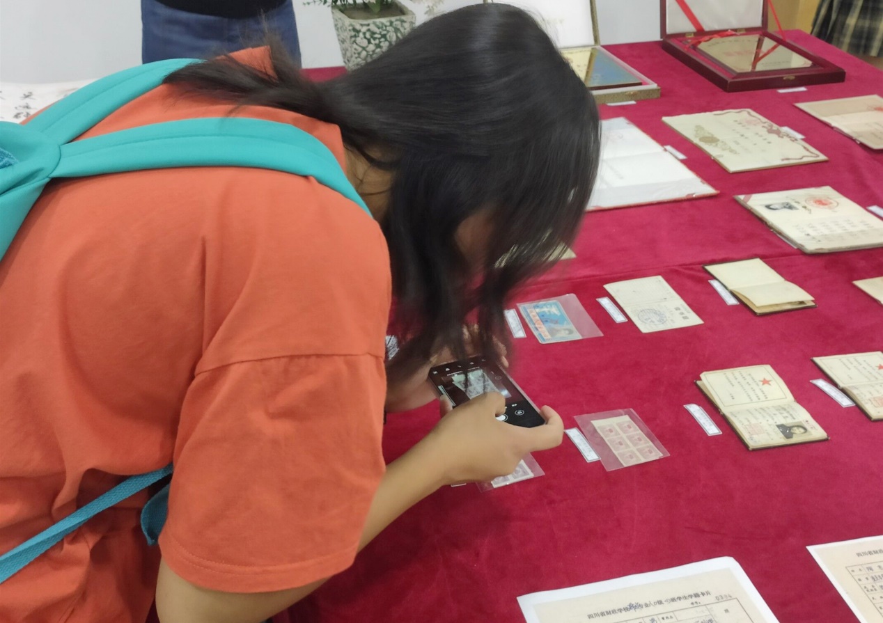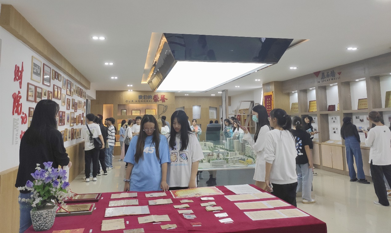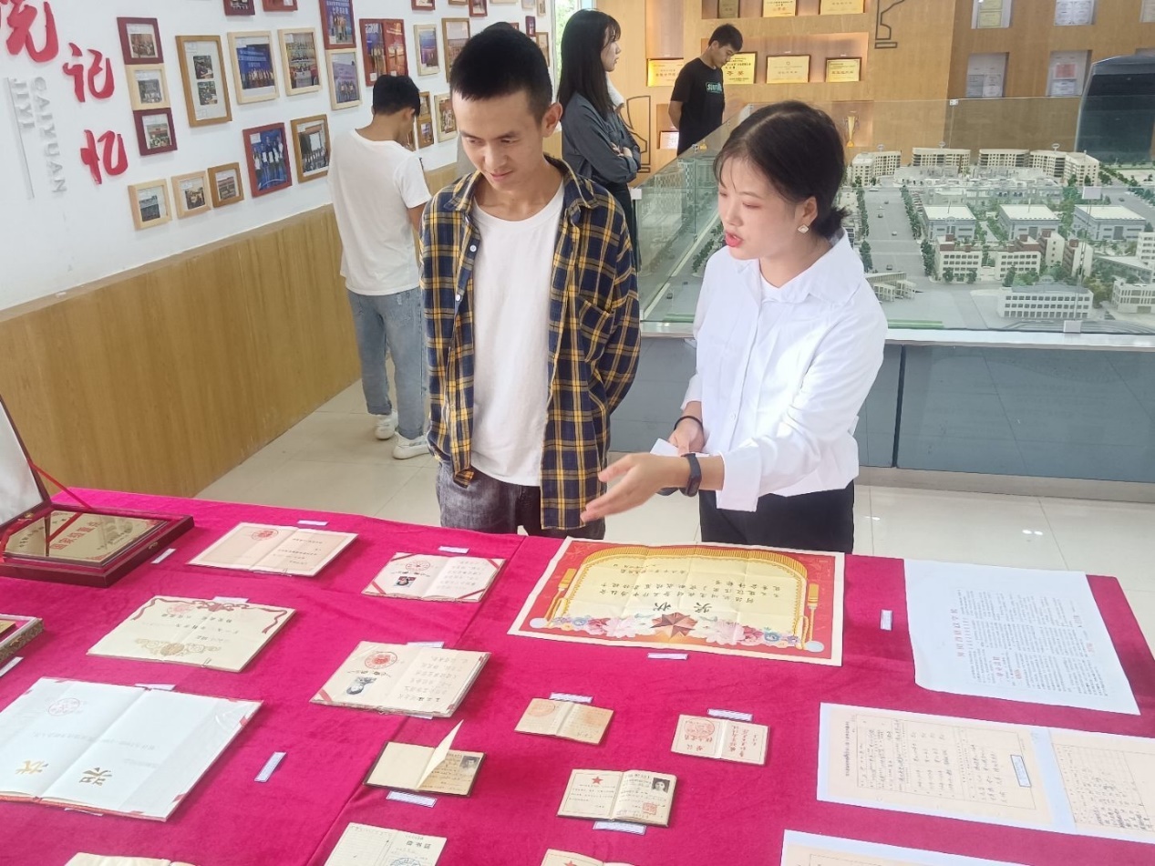 此次展览由档案馆王昱欢老师和2020级会信三班唐燕玲同学、2020级财管三班文姗姗同学担当讲解员。