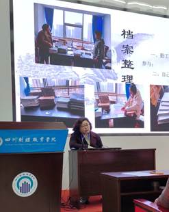 会计学院的郭海川老师和后勤管理中心的王娜老师作为档案工作优秀代表,向大家分享了自己作为部门档案人员工作的一些经验。郭海川老师指出,虽然自己在档案岗位工作时间不长,但是对这份工作做到了用心、用情,在档案馆老师的帮助下,会计学院的档案归档工作开展顺利,档案归档质量、数量都有较大提高;王娜老师用简单的语言、生动的图片,向大家展示了后勤管理中心巨大的档案工作量及工作操作流程,她强调,后勤中心档案工作量虽大,但只要掌握好方法,合理安排好时间,同时以档案人员为主、勤工俭学同学为辅,也能较快较好地完成档案工作。
