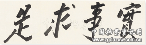 1941年,毛泽东为中央党校题词“实事求是”。 中央档案馆藏