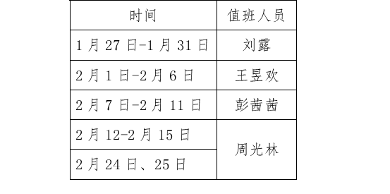 按照学院《关于2026年寒假放假及春季学期开学安排的通知》的时间安排,现将寒假期间档案馆值班安排通知如下: