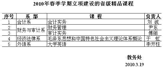 经学院研究同意,下列课程将作为我院2010年春季学期省级精品课程进行建设,请课程负责人按相关要求加强课程建设工作。