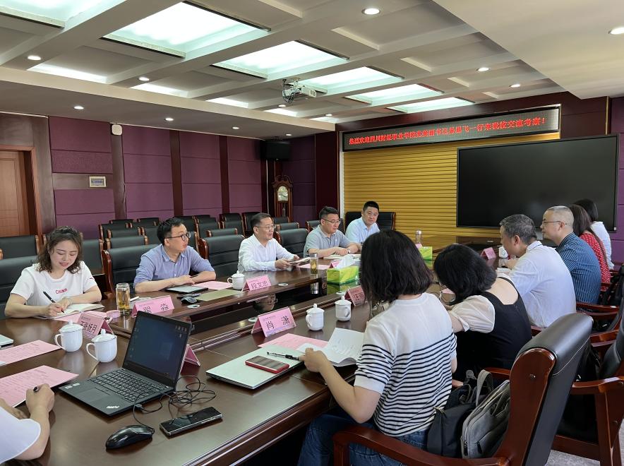 安徽商贸职业学院党委委员、副校长郑承志在交流会上介绍了教师教学能力大赛参赛成果和经验,易思飞对安徽商贸职业学院的热情接待表示感谢,强调建设高水平、结构化教师团队的重要性,简要介绍我院为提升教师教学能力所做的工作,并表示对未来两校能密切合作、共促发展的希望。