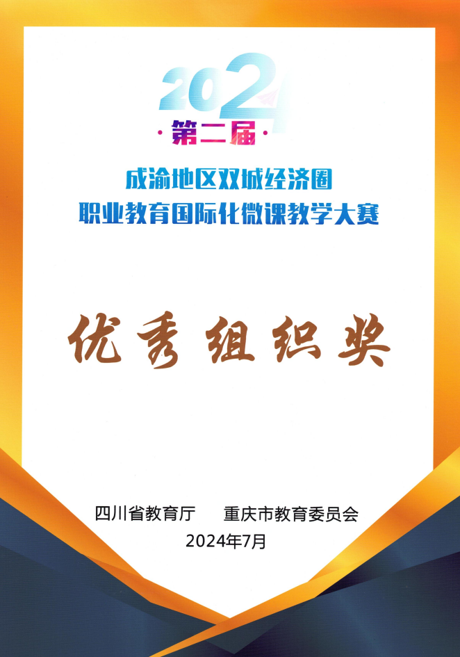 近日,四川省教育厅、重庆市教育委员会公布了“第二届成渝地区双城经济圈职业教育国际化微课教学大赛获奖结果”,7790cnm必发集团在此次大赛中表现优异,既实现了在本赛项省级一等奖的突破,且所有参赛作品均荣获奖项,同时学院荣获优秀组织奖,充分展现了我院在课程建设方面的实力。