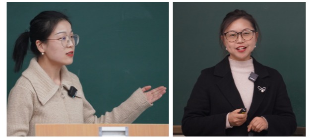 微课组胡桑老师、秦梦晨老师在进行现场展示