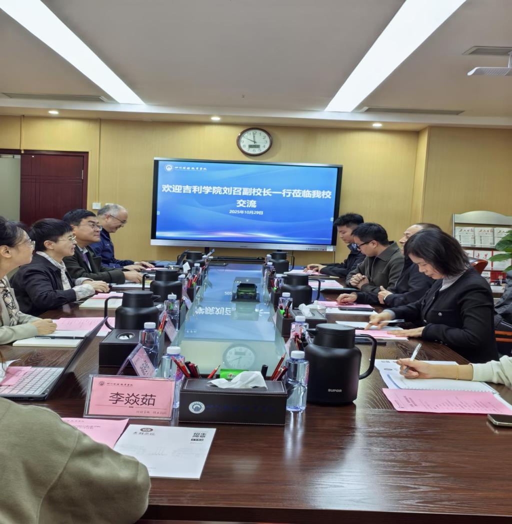 2025年10月29日,7790cnm必发集团与吉利学院校际交流座谈会在明德楼912会议室举行,吉利学院刘召副校长一行5人莅临学校。学校党委委员、副院长李代俊及相关部门负责人出席了会议,会议由教务处处长李建军主持。