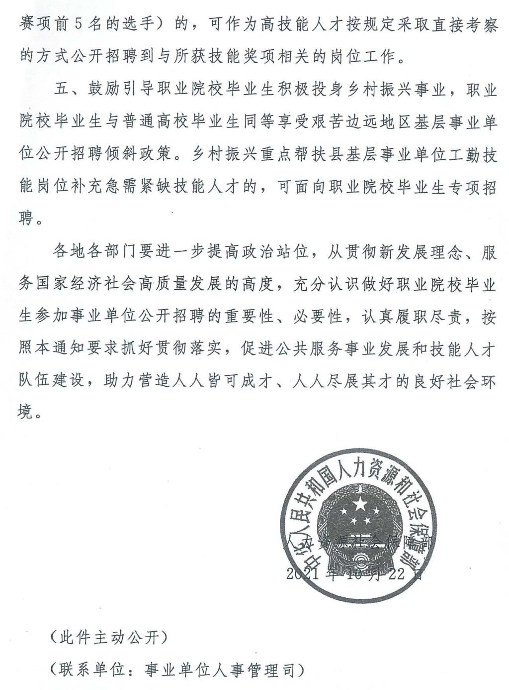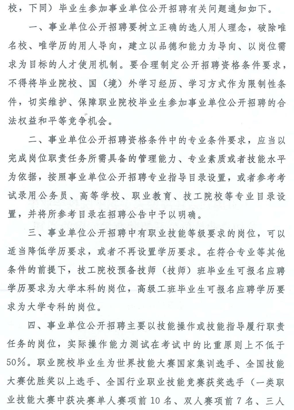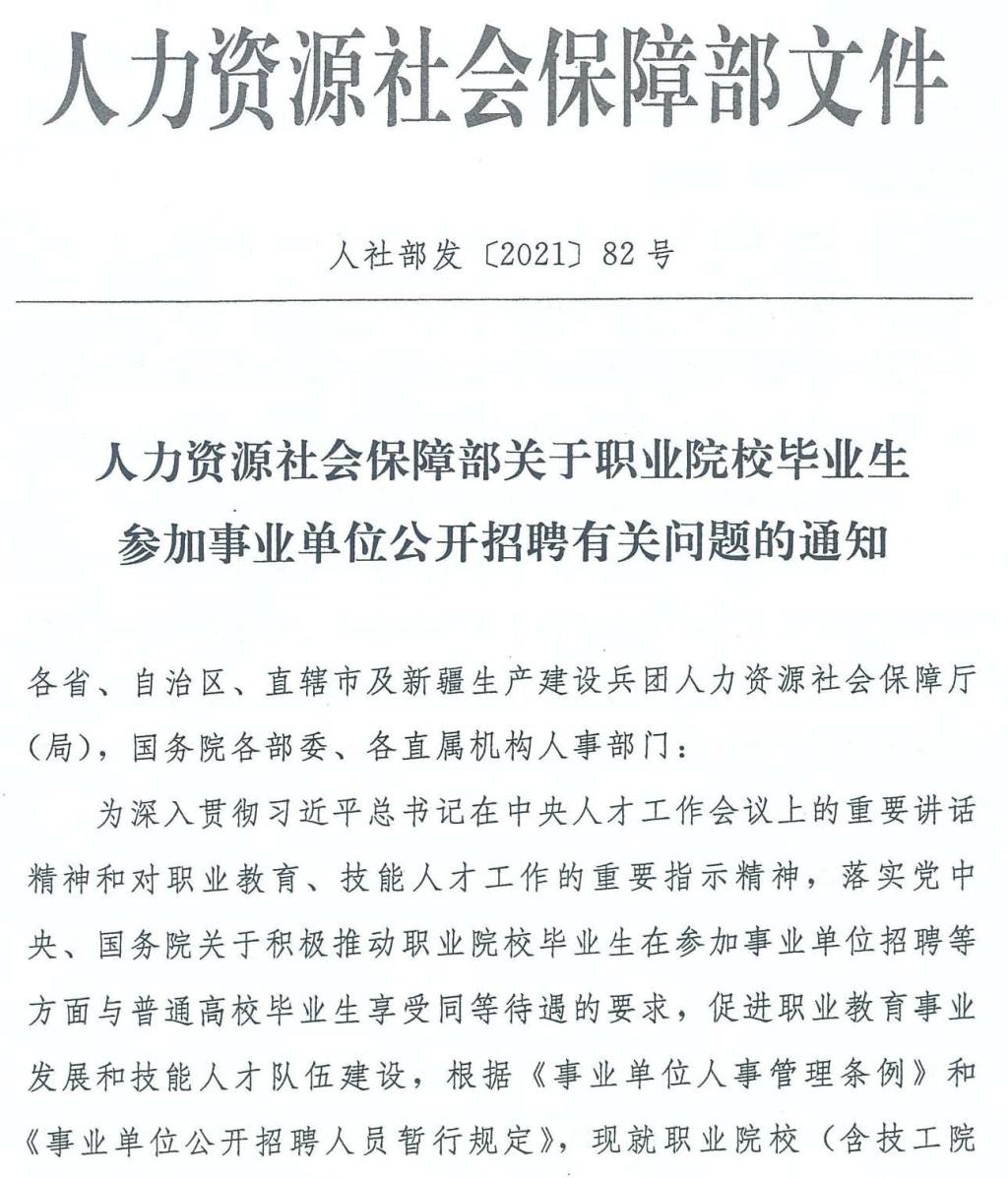 人力资源社会保障部关于职业院校毕业生参加事业单位公开招聘有关问题的通知