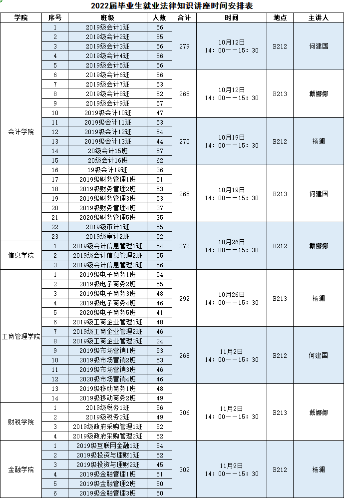 2022届毕业生就业法律知识讲座时间安排表