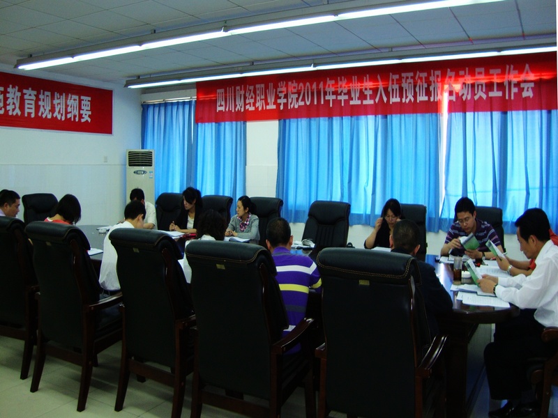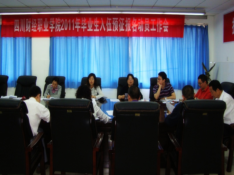 按照《四川省教育厅关于召开2011年四川省高校毕业生入伍预征报名动员工作会议的通知》的要求,我院于2011年5月3日在五楼会议室召开了“2011年毕业生入伍预征报名动员工作会”。会议由招生就业处处长李雁主持,党委副书记、纪委书记张中伟同志出席会议,各系党支部书记、保卫处、学工部、院团委、招就处的同志参加了会议。