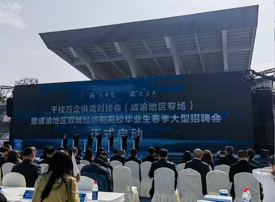 4月3日,由教育部、人力资源社会保障部、四川省人民政府、重庆市人民政府联合主办的“千校万企供需对接会”暨“‘成’就梦想 ‘渝’见未来”成渝地区双城经济圈高校毕业生春季大型招聘会在西南石油大学举行。教育部副部长熊四皓、副省长左永祥出席活动并致辞。