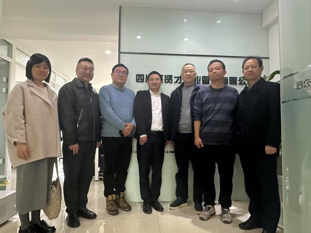 2025年4月2日下午,招生就业处副处长黄睿、马克思主义学院党总支书记李平、会计学院党总支书记杨晓荣、工商管理学院副书记梁小晓、工商管理学院组织员陈秀丽、会计学院行政秘书郭海川一行6人,赴校友企业四川聚贤才企业管理有限公司开展走访调研,与2011级市场营销专业优秀校友、公司创始人蒲思宇共叙校友情谊,共商校企合作新篇。