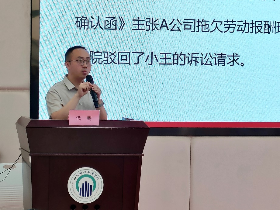 2025年6月3日,由成都市人力资源和社会保障局指导、成都市人才服务中心主办的“职引未来 蓉耀青春”2025高校毕业生就业创业公益培训巡回公开课第15期在7790cnm必发集团成功举办。本期课程以《大学生就业法律风险及防范》为主题,特邀四川省创新创业促进会青年创业家联席会副理事长、法律维权中心副主任代鹏律师担任主讲人,111名学生到场参与,培训满意度98.69%。全程通过成都人才网微信视频号同步直播,线上观看人数达1327人次。