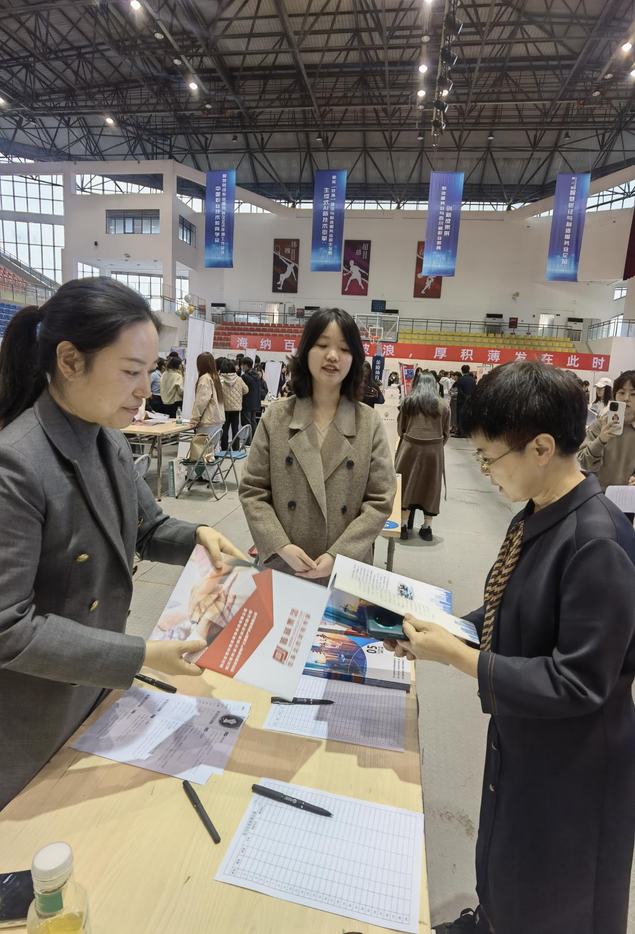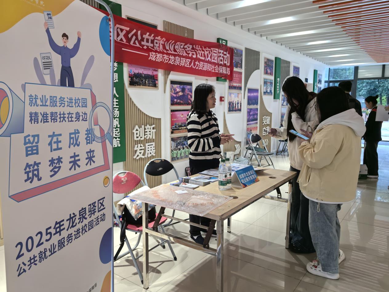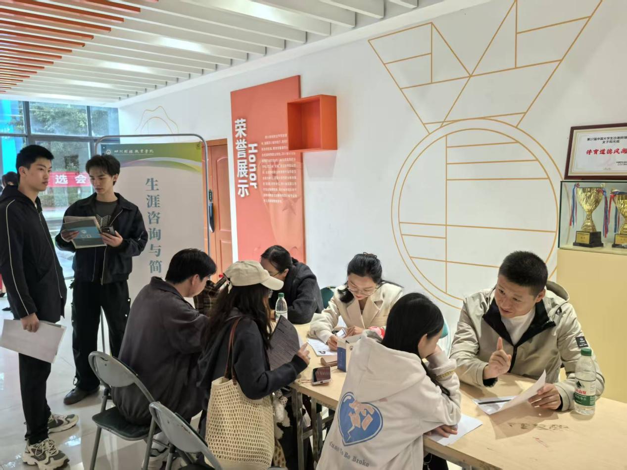 为全方位护航毕业生求职之路,学院招生就业处创新构建“政校联动、精准赋能”服务体系,联合龙泉驿区人力资源和社会保障局、学院武装保卫部及“财菁筑梦”生涯工作室,在双选会现场设立三大专项服务区:政策咨询区聚焦就业创业补贴、社保衔接等政策解读;征兵宣传区提供入伍条件、退役安置等专业咨询,引导学子携笔从戎;生涯规划咨询区则由专业导师现场开展简历优化、面试指导等“一对一”服务,助力毕业生提升求职竞争力。