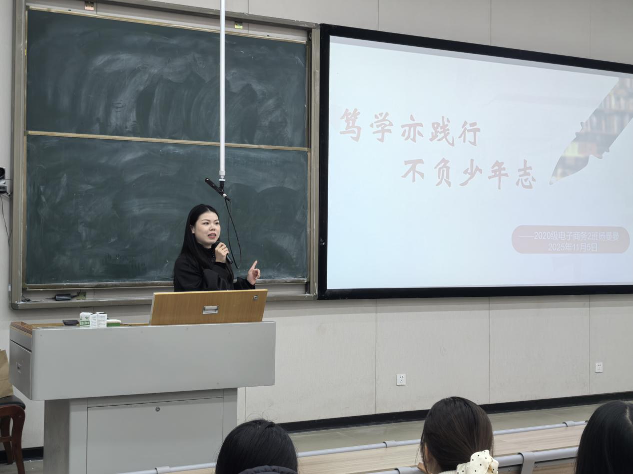 为帮助在校生厘清职业规划方向,化解“创业还是就业”的选择困惑,传递校友成长经验,2025年12月2日14:00-15:30,招生就业处在致诚楼B112阶梯教室成功举办“从创业回归就业的心路”主题沙龙分享会。本次分享会特别邀请我校优秀校友、2020级电子商务专业保送生杨曼曼主讲,近200名在校生到场聆听,现场互动热烈,反响良好。