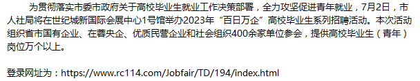成都市2023年“百日万企”高校毕业生系列招聘活动