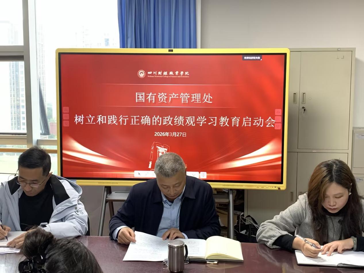 2026年3月27日,国有资产管理处党支部在明德楼805室召开树立和践行正确政绩观学习教育启动会。会议由处长李如万主持,全体教职工参加。