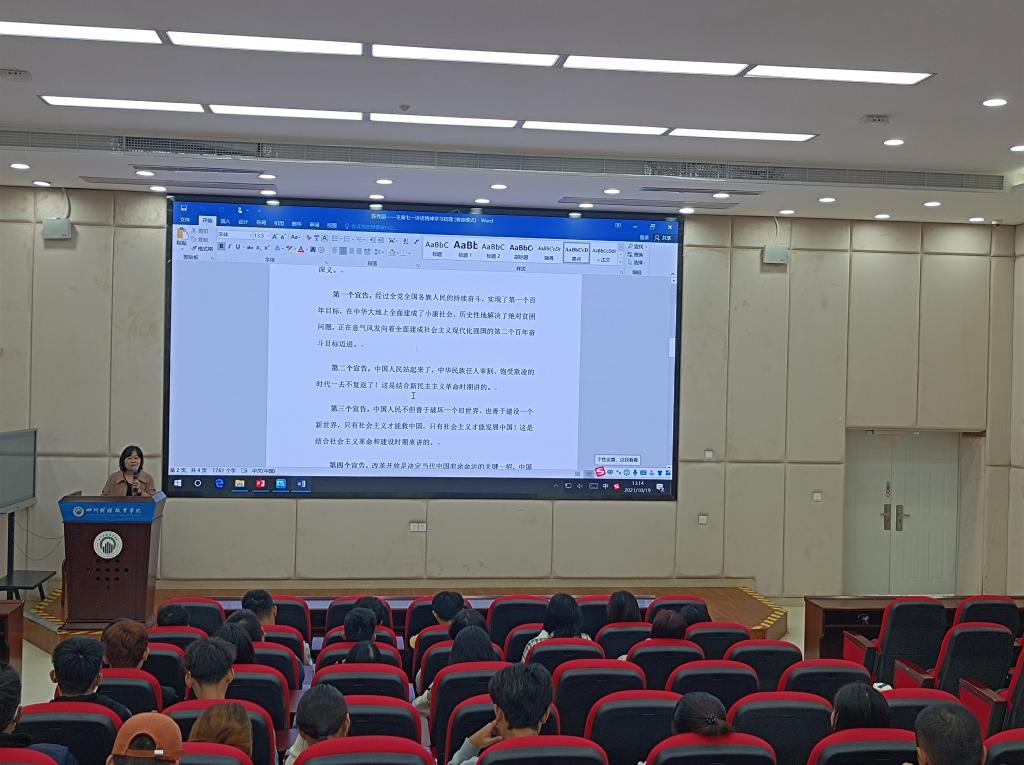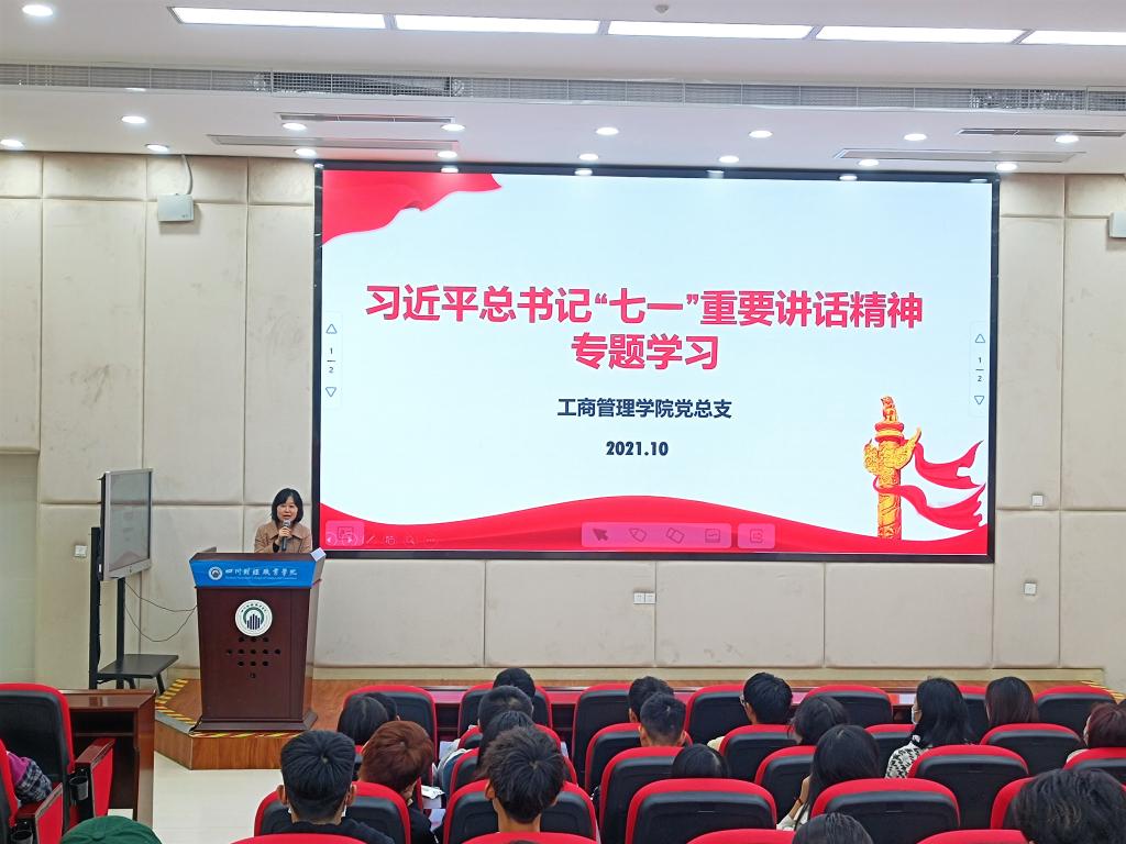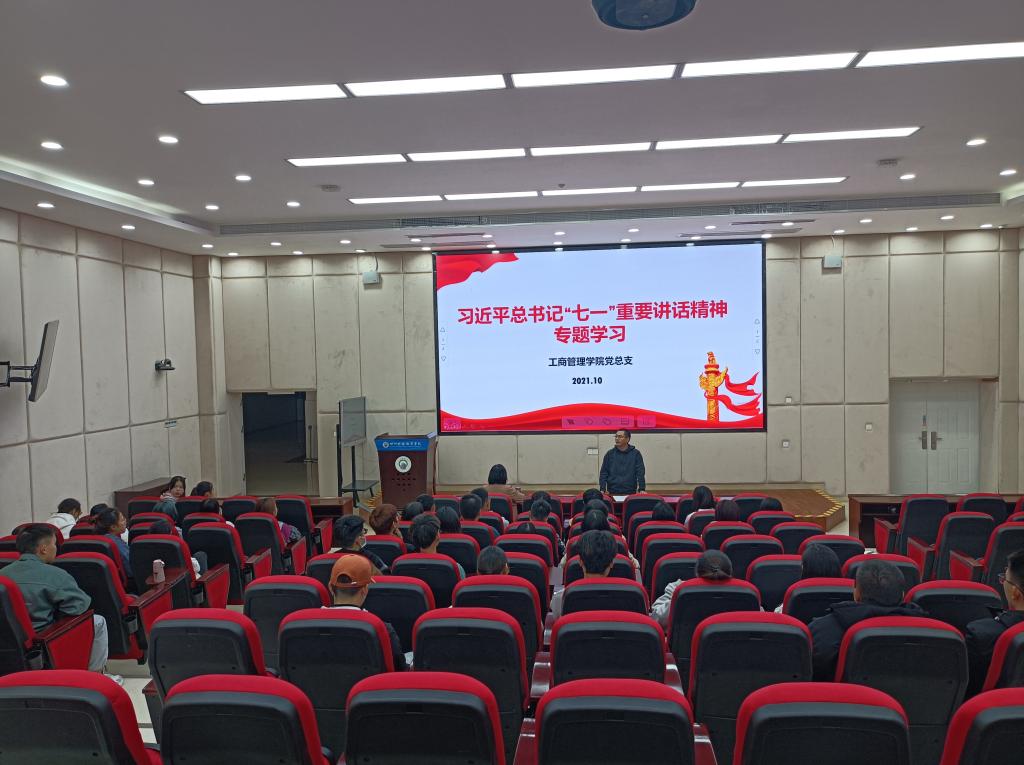 2021年10月19日,工商管理学院学生党支部按照党总支工作安排,组织召开习近平总书记七一重要讲话精神专题学习会,参加学习的有党总支书记郑代富、学生党支部书记陈秀丽及工商管理学院各班学生干部和非学生干部代表。