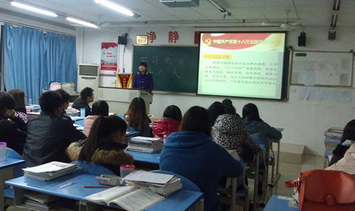 2012年12月3日晚19点40分,我系工商管理学生党小组组织全体学生党员、预备党员、入党积极分子在C410组织学习了党的十八大会议精神。