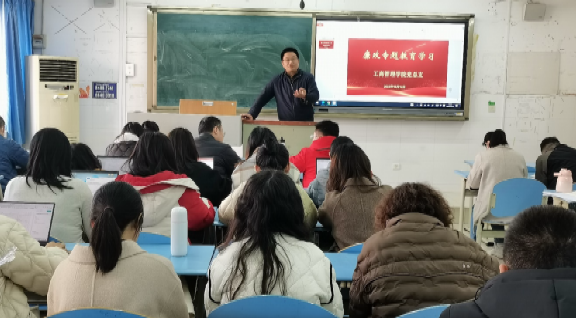 工商管理学院党总支根据学校纪检监察工作安排,贯彻落实全面从严治党和党风廉政建设要求,持续加强廉政教育,结合学院工作实际,于2023年12月12日组织工商管理学院党总支组织全体党员教师开展第四季度党员干部廉政专题教育学习会。