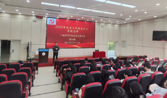 为加强支部建设,提升党员党性修养,在全国瞩目的两会之后,工商管理学院党总支副书记梁小晓于2025年3月25日面向全体教师党员开展了专题党课学习。党课以“聚焦两会热点,把握时代发展脉搏”为主题,旨在引导广大党员深入学习领会两会精神,紧跟时代发展步伐,为实现中华民族伟大复兴的中国梦贡献力量。