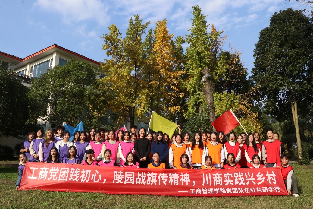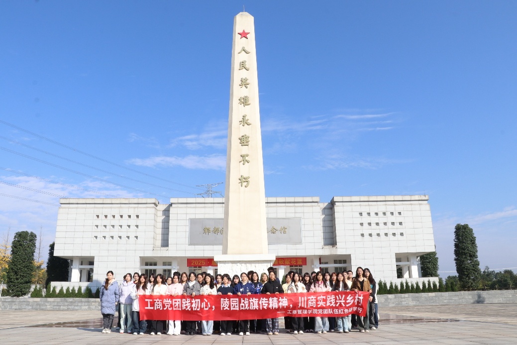 为深化青年思想政治引领,传承红色基因,学习贯彻乡村振兴战略,提升党团队伍的实践能力与责任担当。2025年11月15日,工商管理学院团总支工作负责人王欣然老师、辅导员谢敏怡老师带队,组织50名新发展党团学生代表赴成都市郫都区,开展以“工商党团践初心,陵园战旗传精神,川商实践兴乡村”为核心的红色研学实践活动。