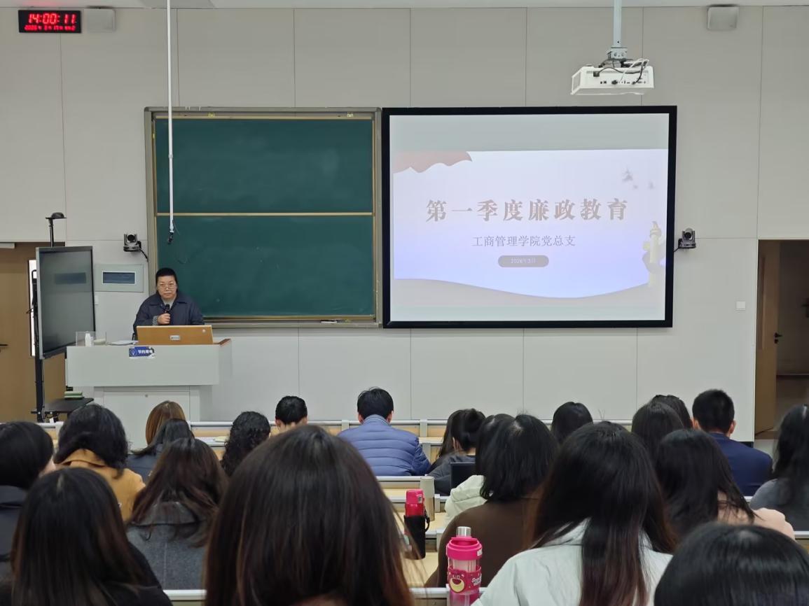 为学习贯彻习近平总书记在二十届中央纪委五次全会上的重要讲话和全会精神,工商管理学院党总支组织全体教师于2026年3月17日下午,在B209教室开展了2026年第一季度党员干部廉政教育学习会。
